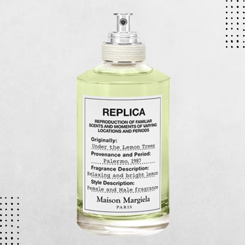 Maison Margiela's Replica line aims to aromatically recreate specific moments and locations. Maison Margiela โ Under The Lemon Treesย It conveys the feeling of a day spent in the Italian city of Palermo in 1987. It is fresh air, in which the green of lemon tree leaves, ripe citrus juice and sun-warmed earth combine. It is Women's perfume And Men's perfume For those who prefer natural, airy and sophisticated freshness.