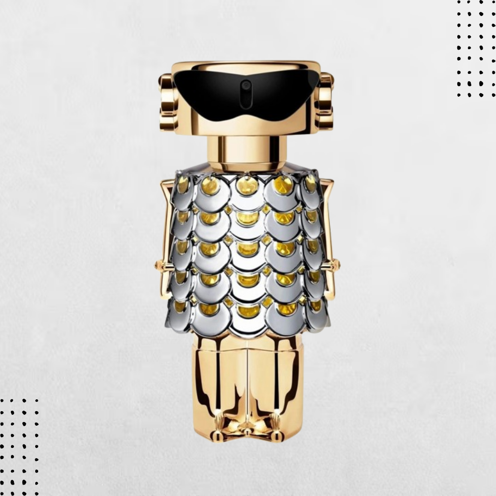 Paco Rabanne – Fame არ არის უბრალოდ სურნელი, ეს არის ცნობადობა, ფუფუნება და ენერგია, ჩასმული საკულტო ფლაკონში. რობოტის ფორმის ვერცხლისა და ოქროსფერი დიზაინი, რომელიც მზის სათვალეებითაა შემკული, მყისიერად გაგონებთ Paco Rabanne-ის გაბედულ, ფუტურისტულ სტილს. ეს არის მხიარული და სენსუალური ორიგინალი სუნამო, რომელიც განკუთვნილია ქალისთვის, ვისაც უყვარს ყურადღების ცენტრში ყოფნა.